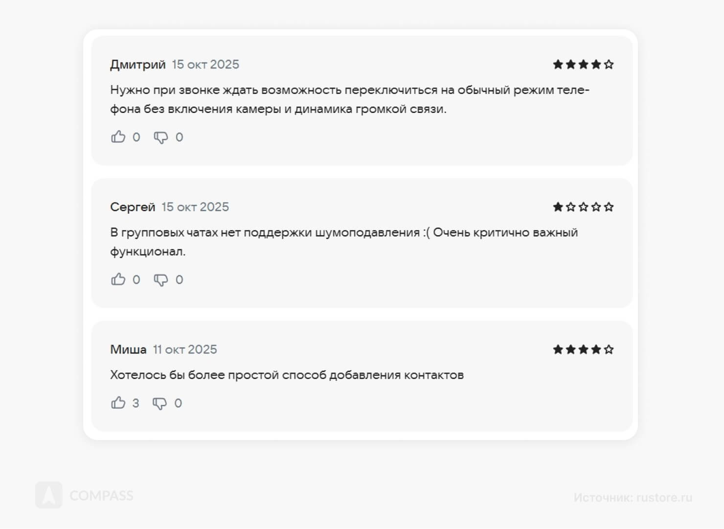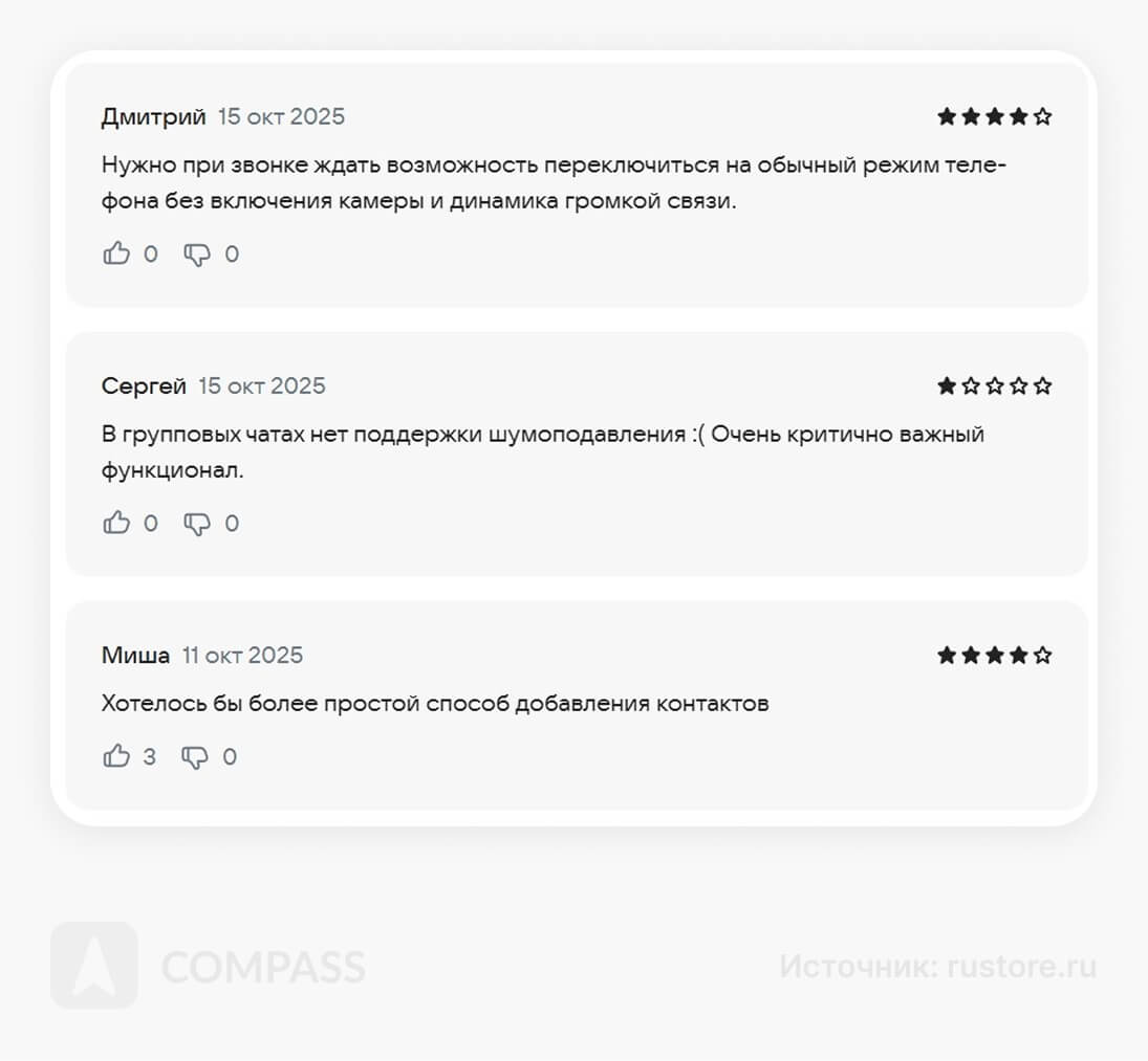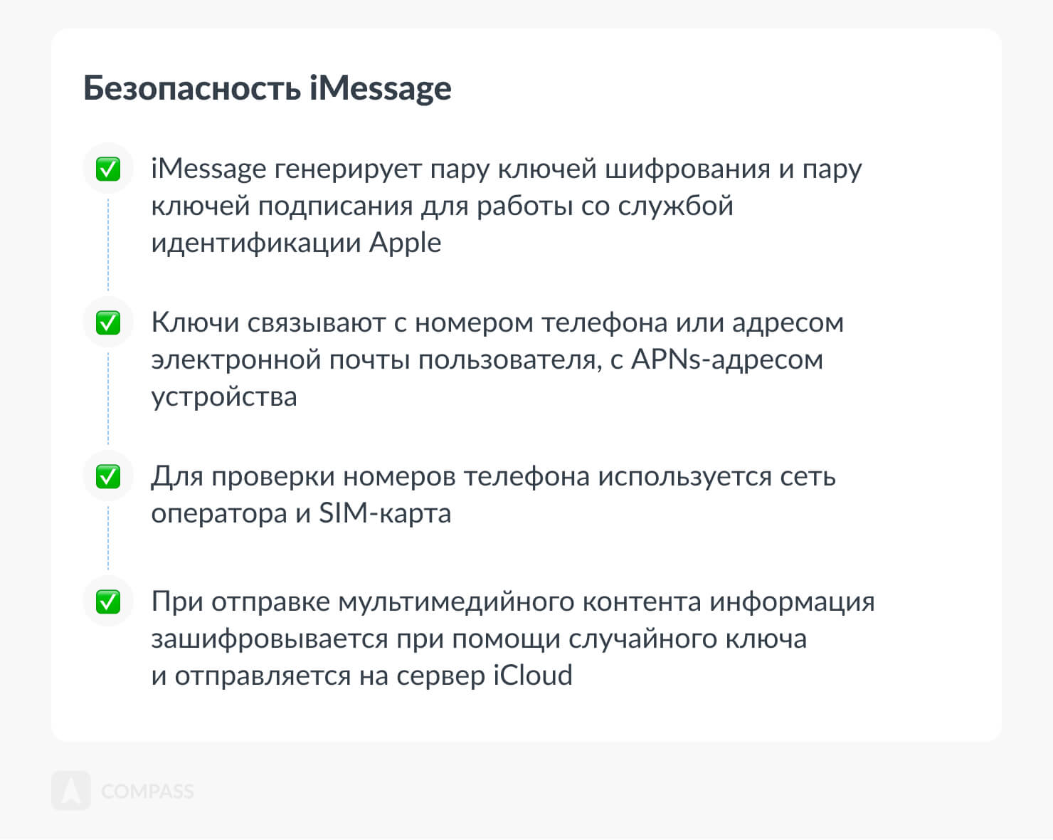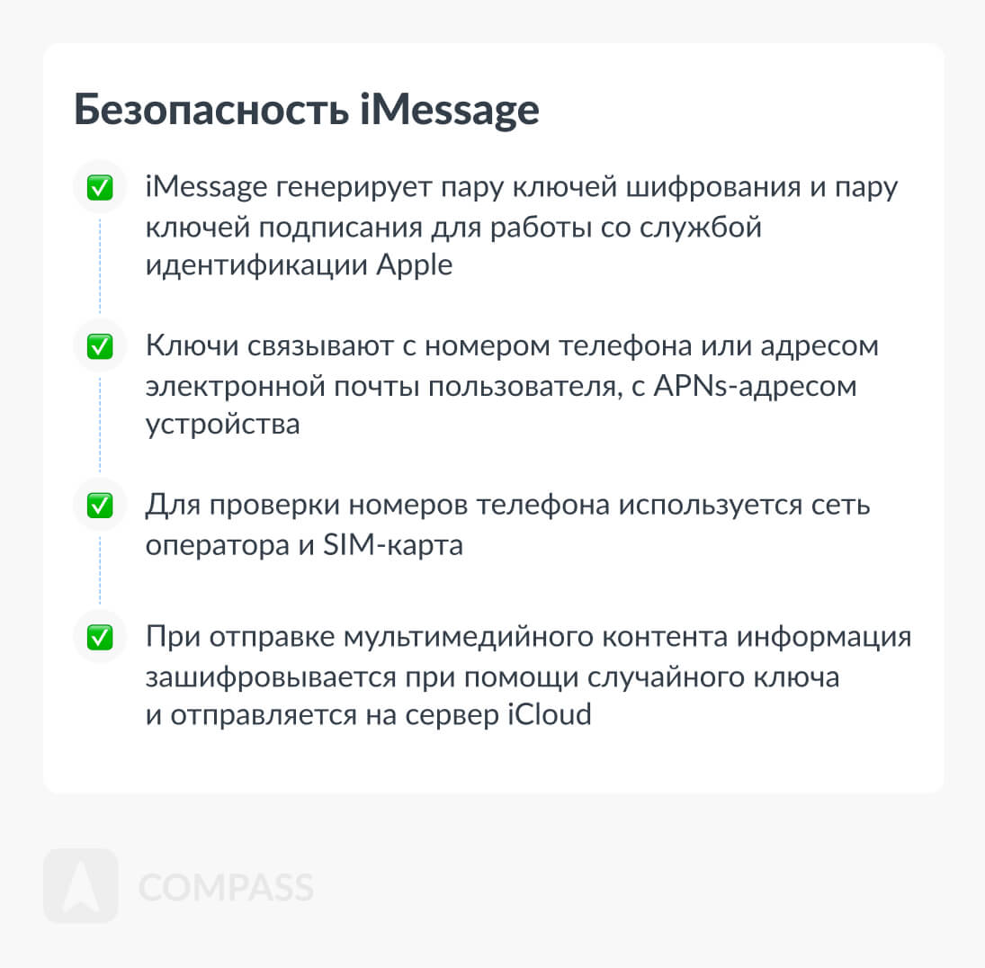 Compass — безопасный мессенджер со встроенными звонками и видеоконференциями. Продукт российской компании, внесенный в перечень отечественного ПО. В отличие от иностранных мессенджеров WhatsApp* и Telegram, все дата-центры Compass находятся в России. Безопасность оборудования подтверждена международными стандартами ISO и ФСТЭК. Для защиты данных предпринят ряд мер: