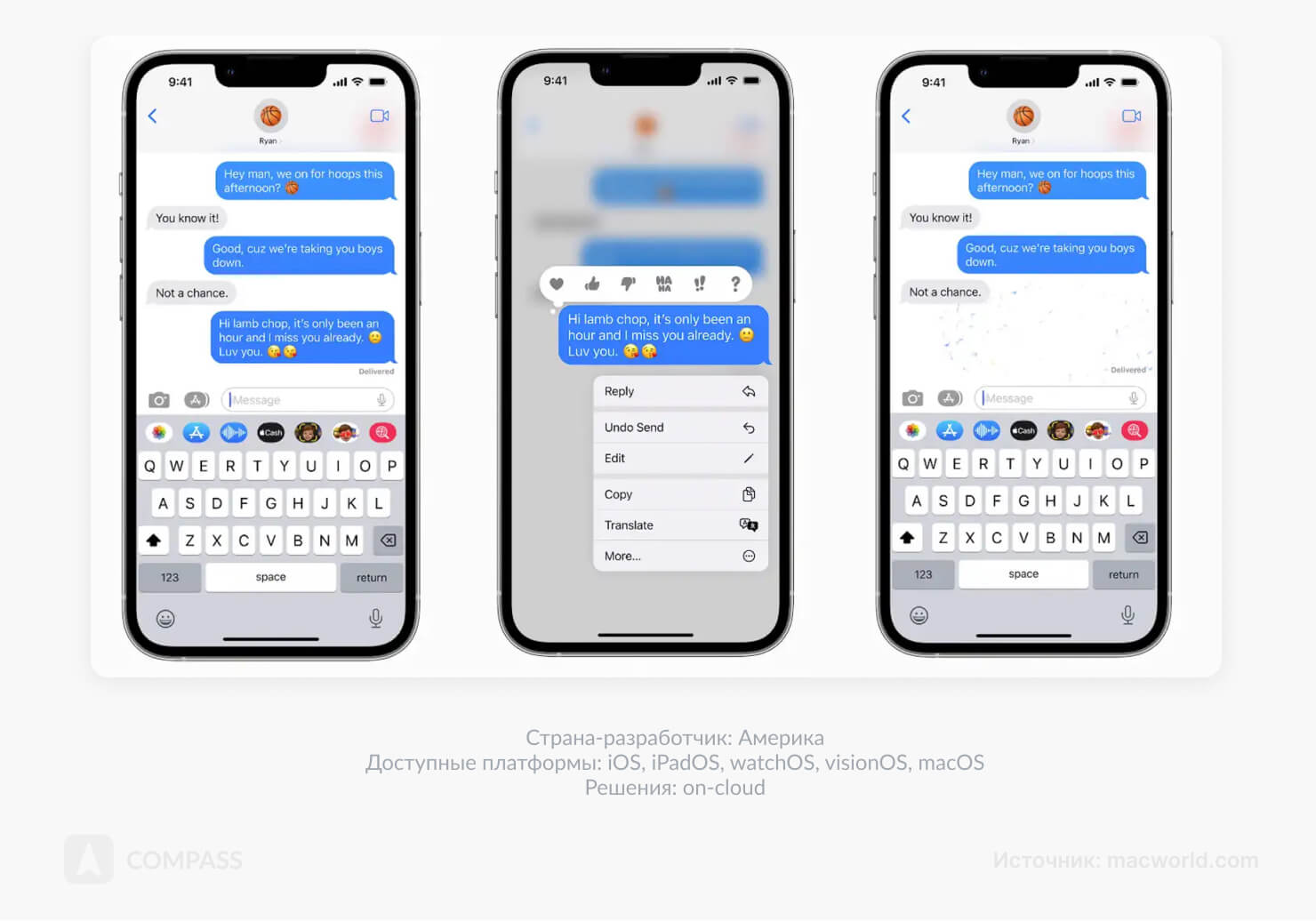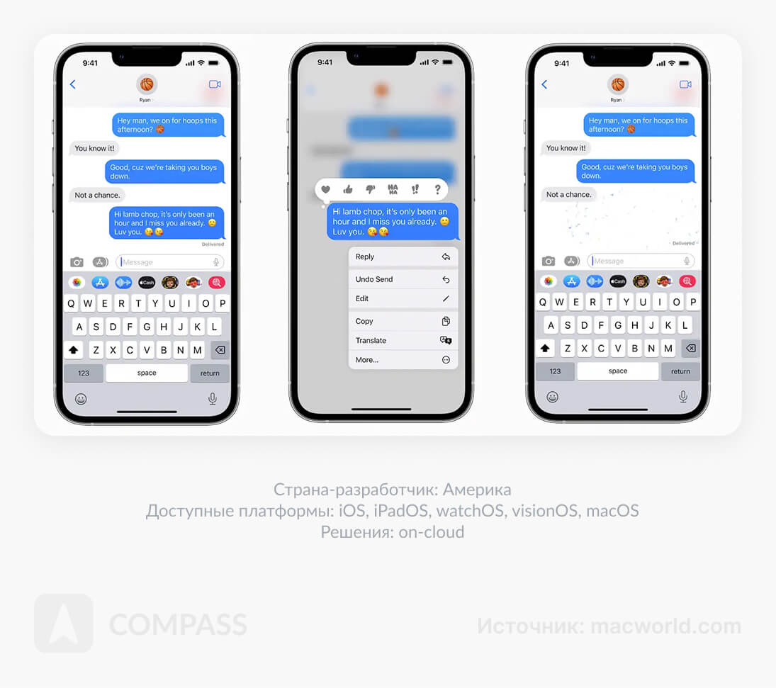 В iMessage можно отправлять текстовые и голосовые сообщения, анимационные рисунки, нарисованные от руки. Работу этого сервиса не замедляют, так как Роскомнадзор частично ограничивает работу WhatsApp* и других продуктов, если они неоднократно вредят гражданам и поощряют вымогательства.