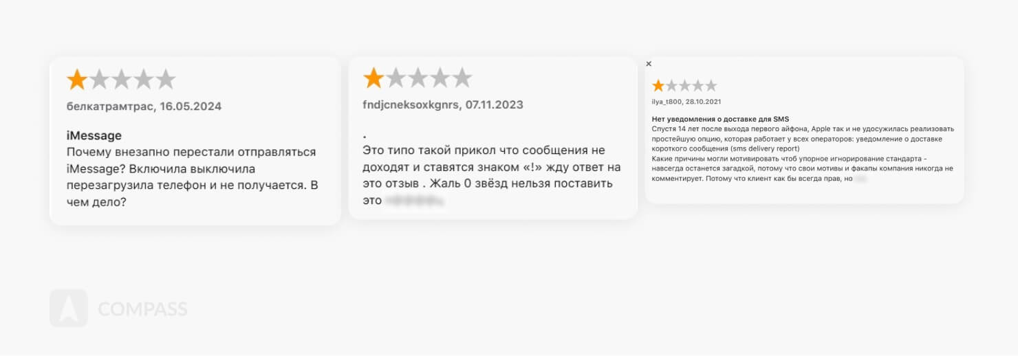 В отзывах в AppStore пользователи чаще всего жалуются, что им не приходят сообщения или их сложно отправить.
