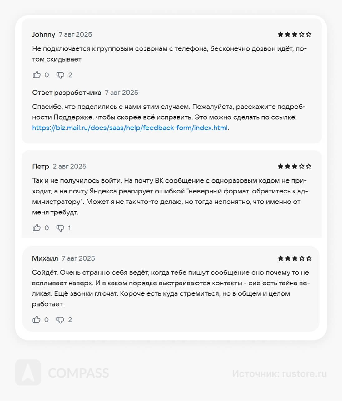 В отзывах пользователи указывают, что найти в тредах нужную информацию сложно и часто возникают ошибки в работе приложения.