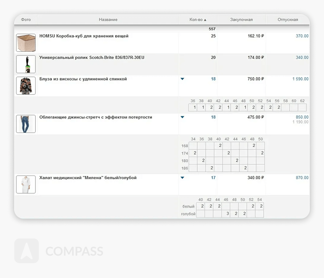 Выстроив товарный учет на складе в сервисе, владелец бизнеса получает цельную картину и может планировать закупки, формировать ассортимент в зависимости от спроса.