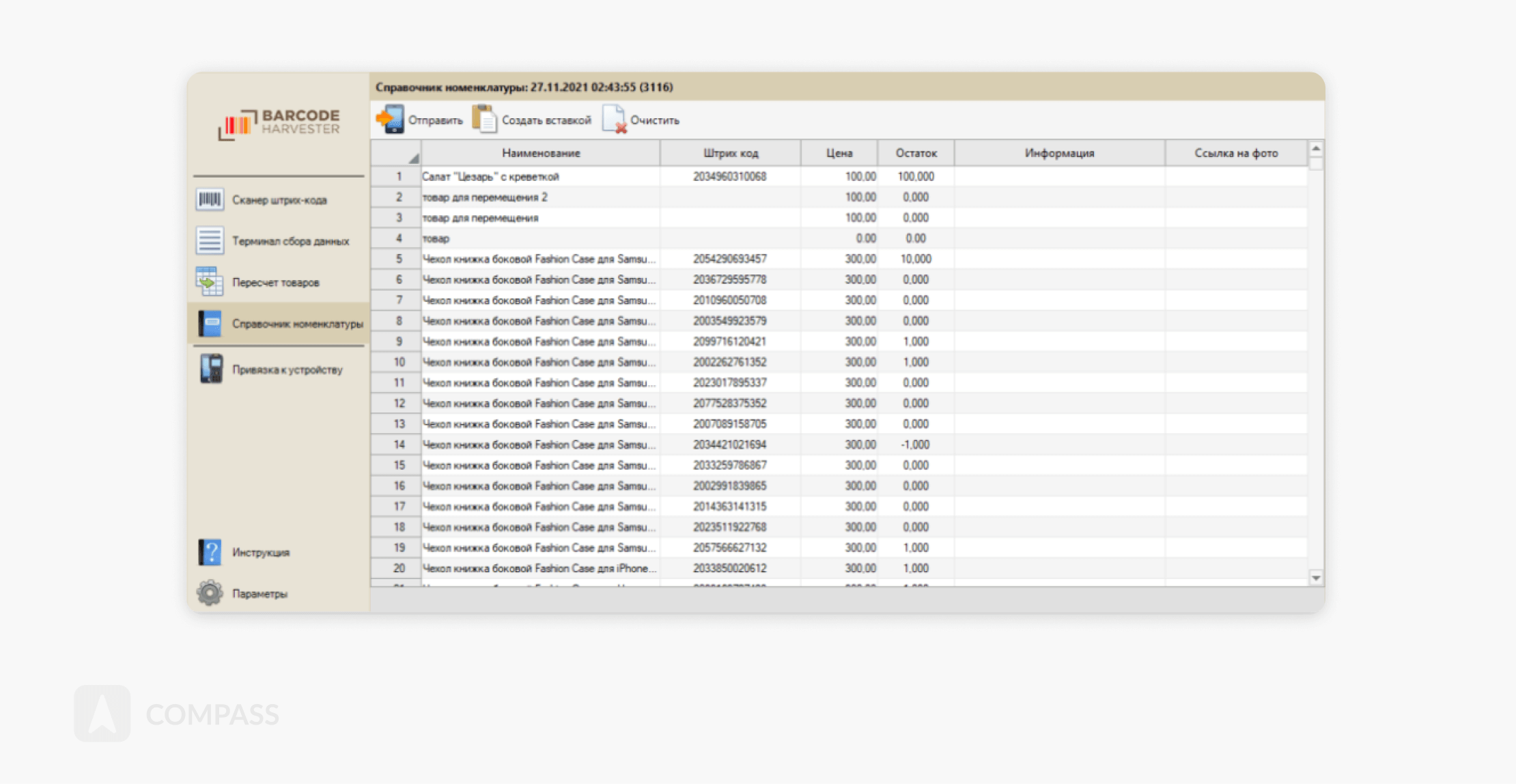 Создание товарной базы. В сервисе не нужно вручную заводить позиции, можно сделать экспорт из excel-файлов и файлов других форматов. Дальше базу можно отредактировать, например, дополнить характеристики товаров в карточке и добавить фотографии. Также при приемке некоторые программы для товарного учета на складе могут сверять позиции, находить новые товары и добавлять их в базу.