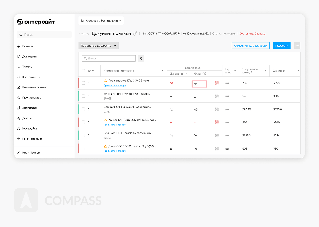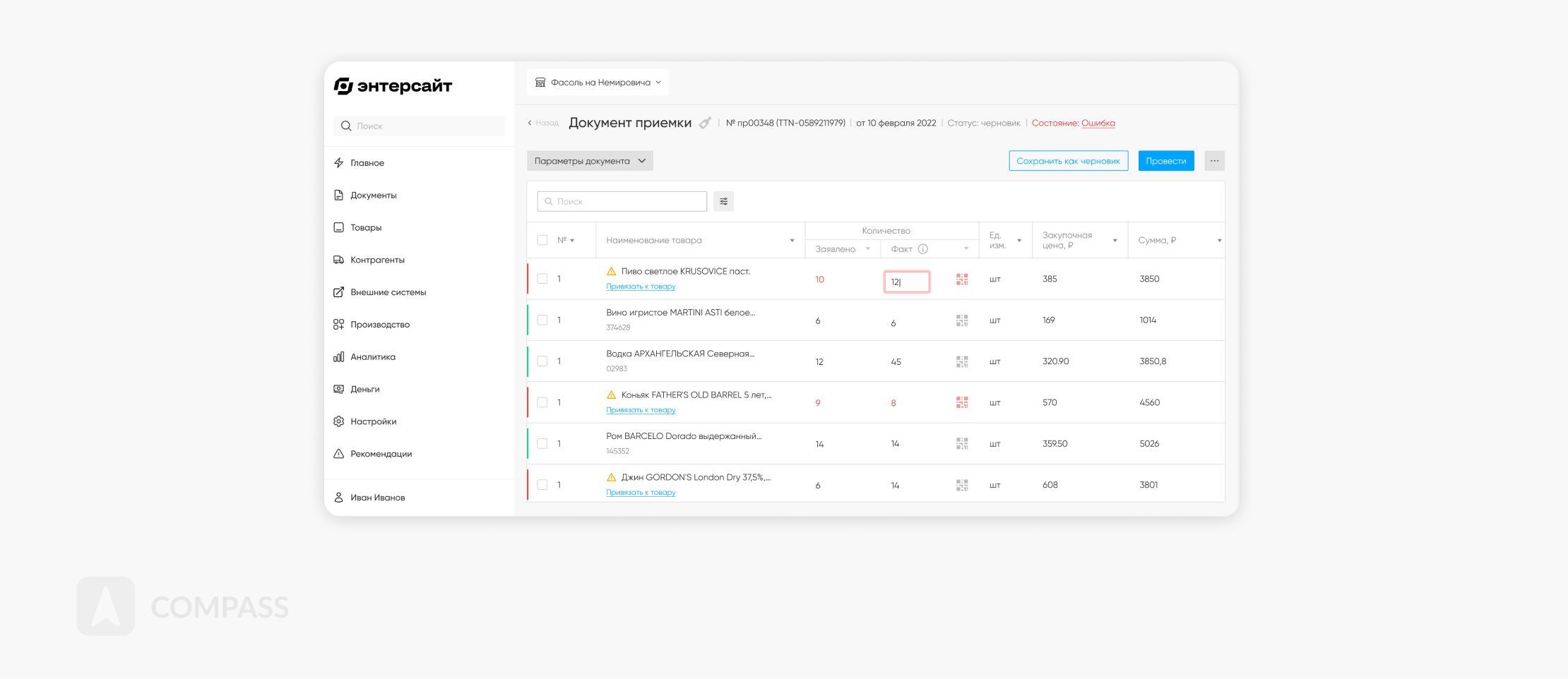 Упростить операции с товарами. В программе складского учета проще принимать товар, заводить новые позиции в базу, передавать данные в «Честный знак» или проводить инвентаризацию. Например, не нужно вносить данные о приходе вручную, достаточно загрузить накладную или УПД, данные о товаре подтянутся автоматически.